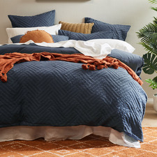 Riverland Blue Chevron Quilted Velvet Quilt Cover Set